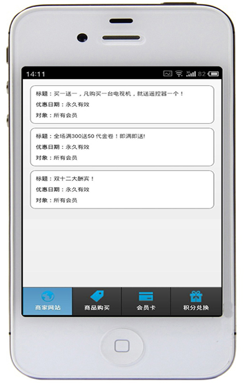 所有在后臺添加的優(yōu)惠消息,將會顯示在列表中!