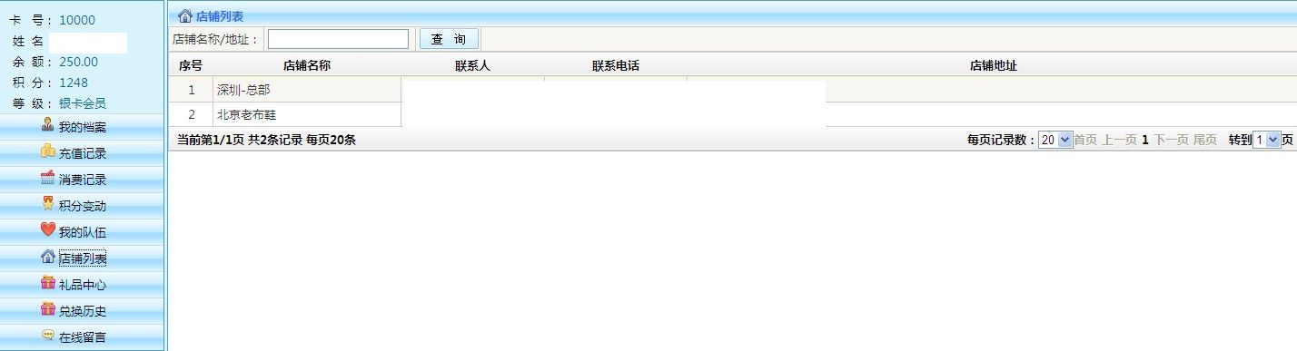 五通一卡通云會員管理系統(tǒng)店鋪列表