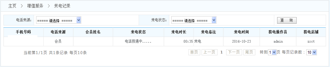 2.查詢(xún):按照條件查詢(xún)出來(lái)電彈屏的記錄數(shù)據(jù)(例如 根據(jù)電話(huà)來(lái)源